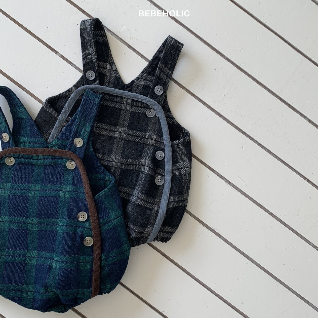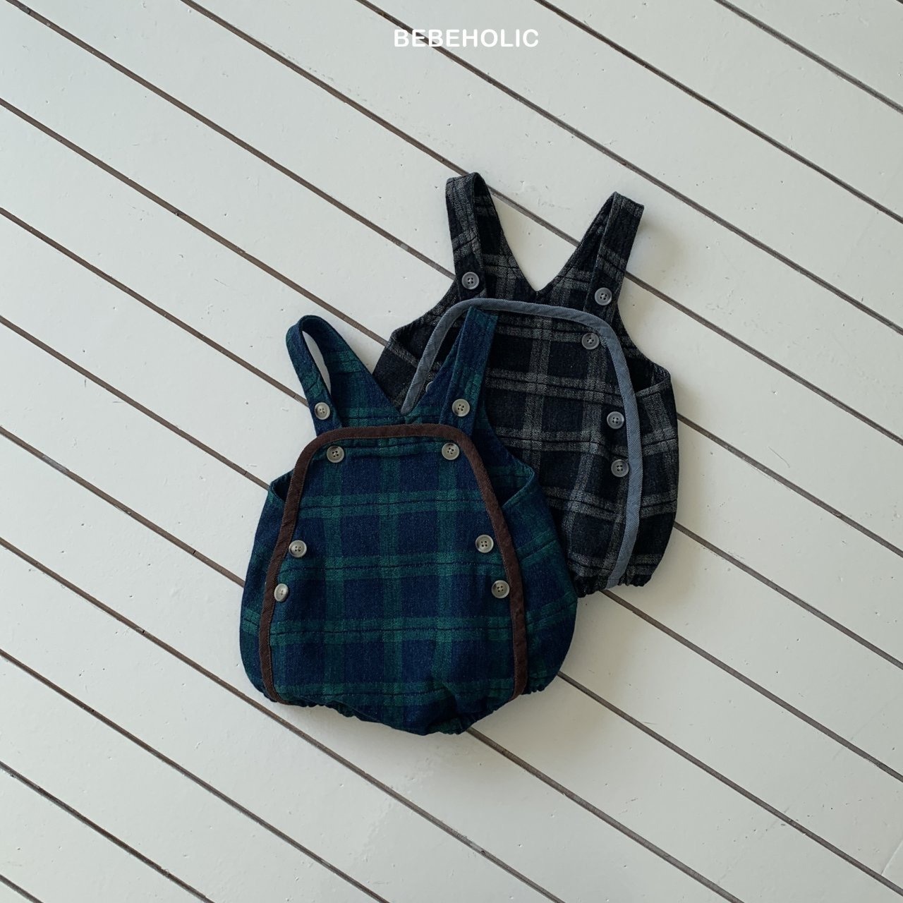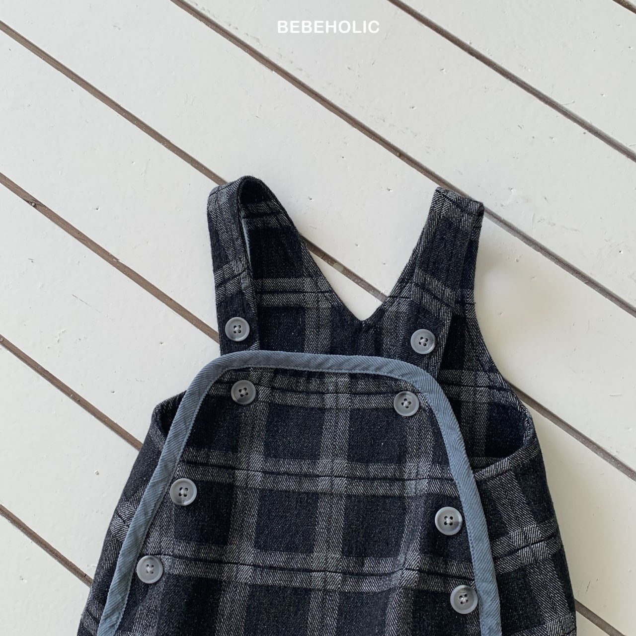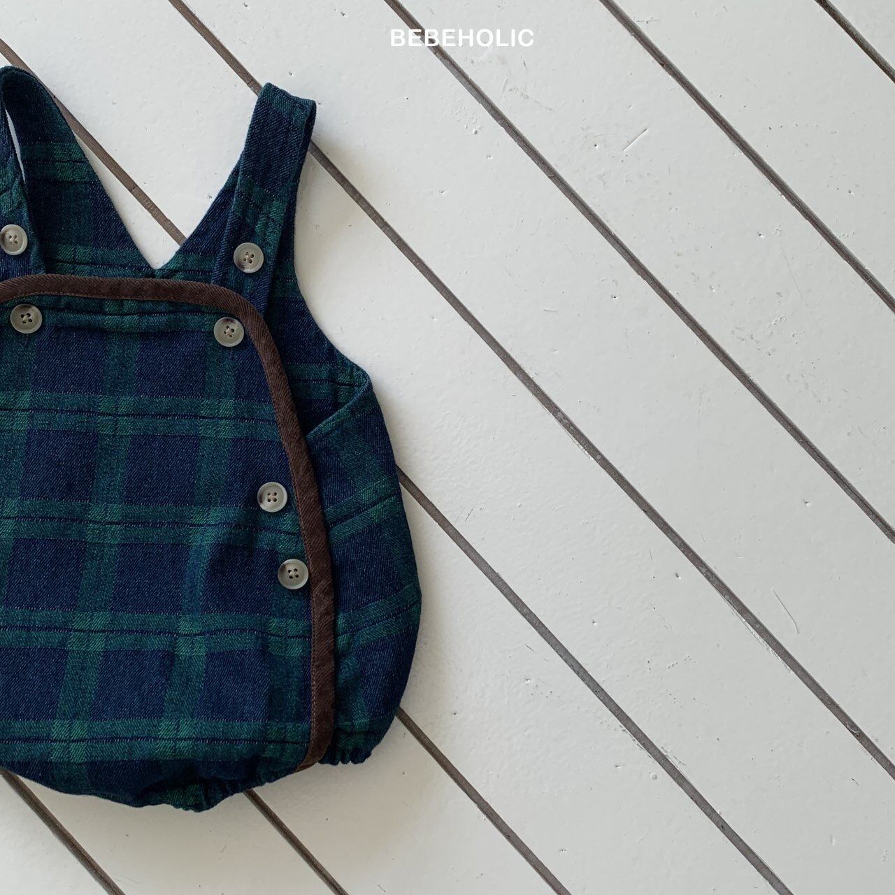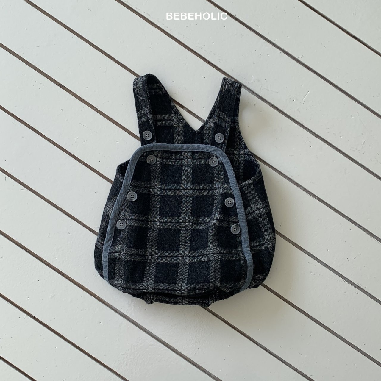 【即納】bebeholic/Checked Denim Overalls