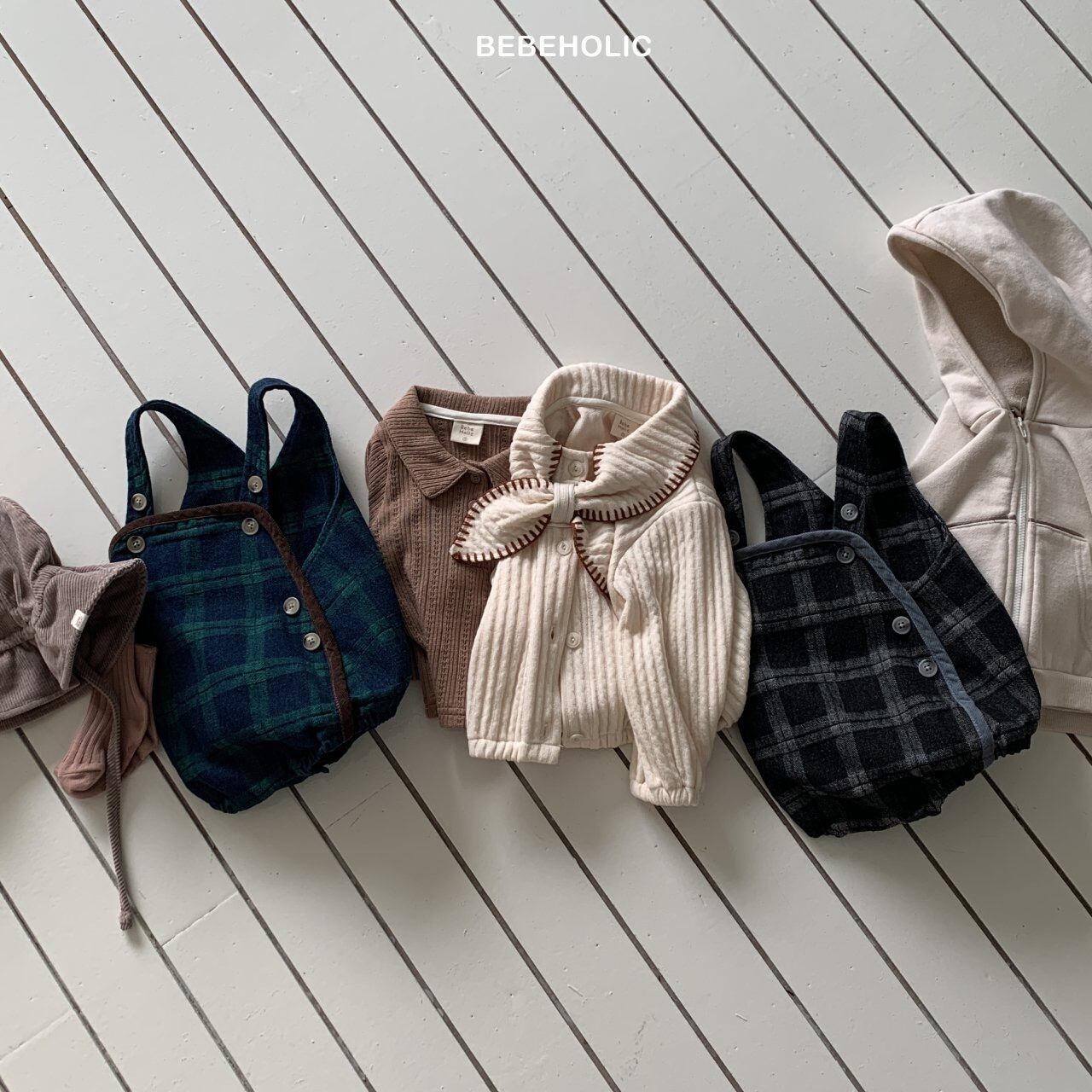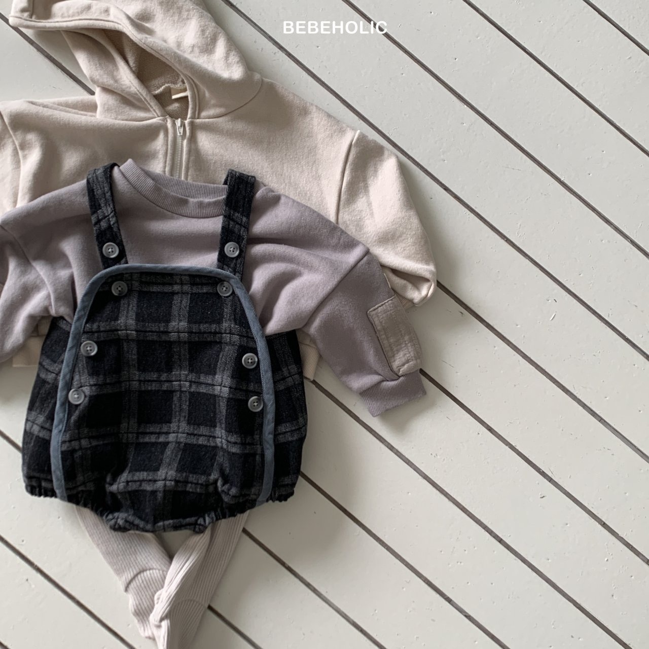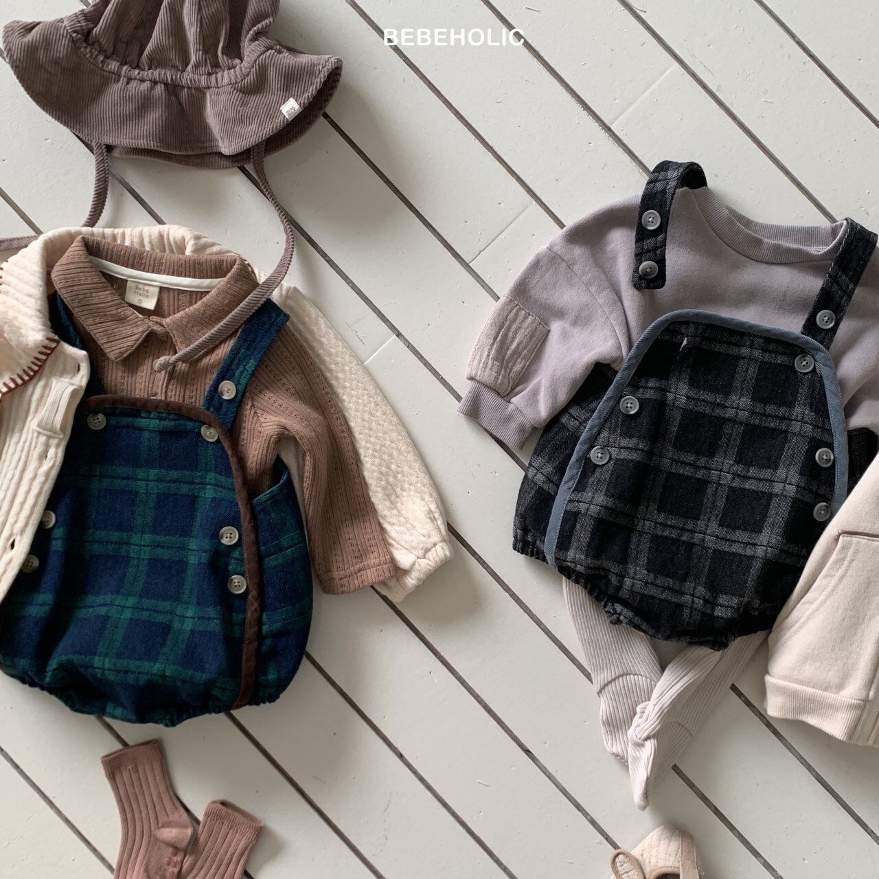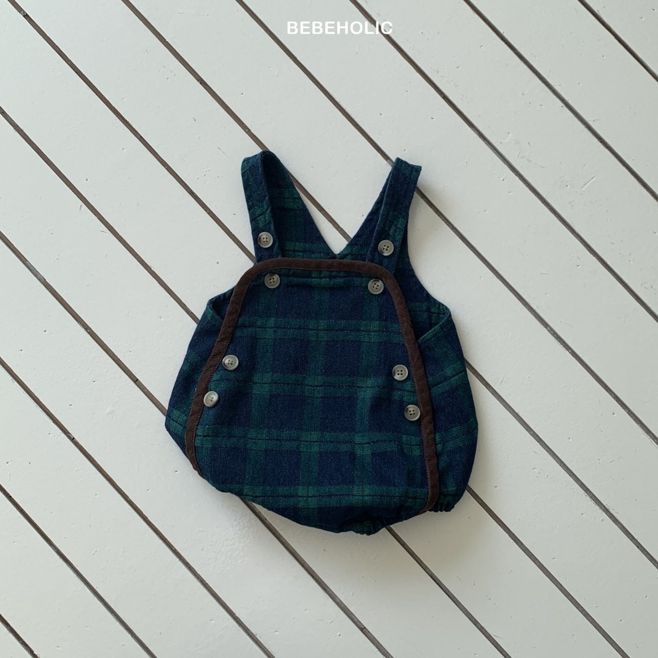【即納】bebeholic/Checked Denim Overalls