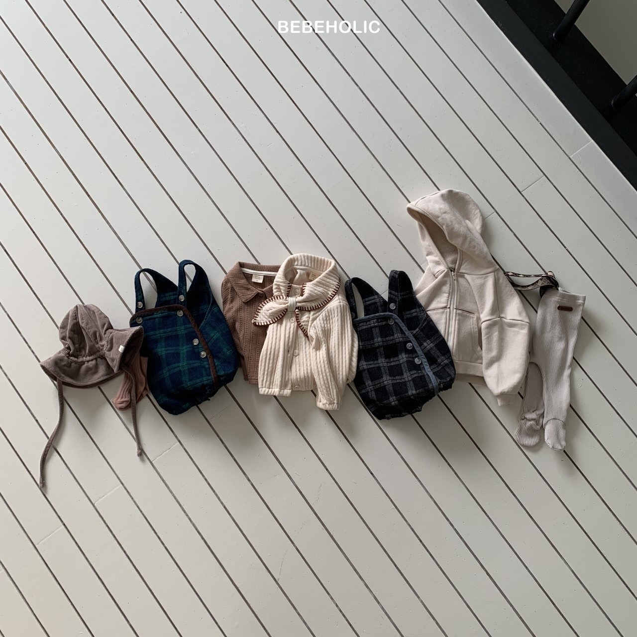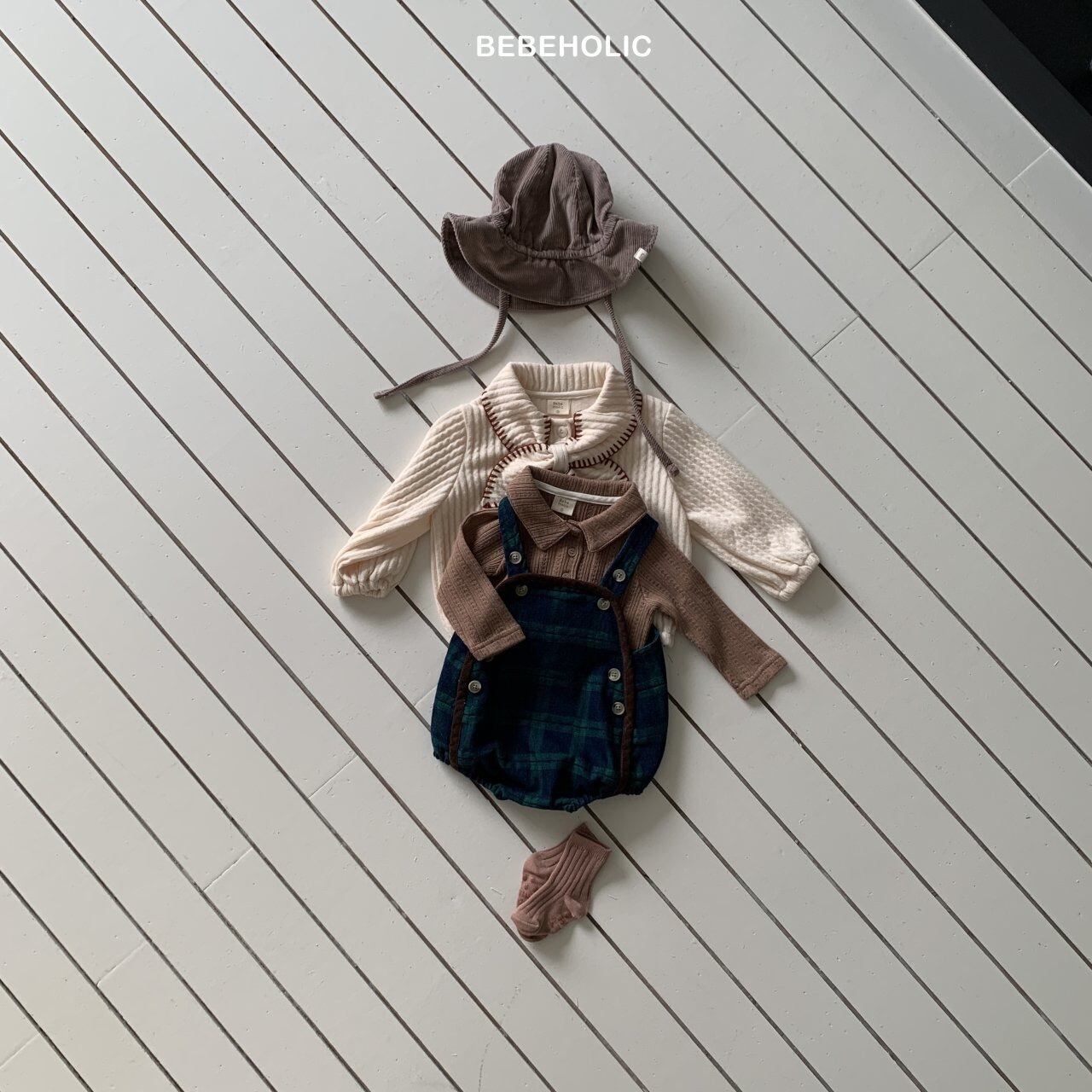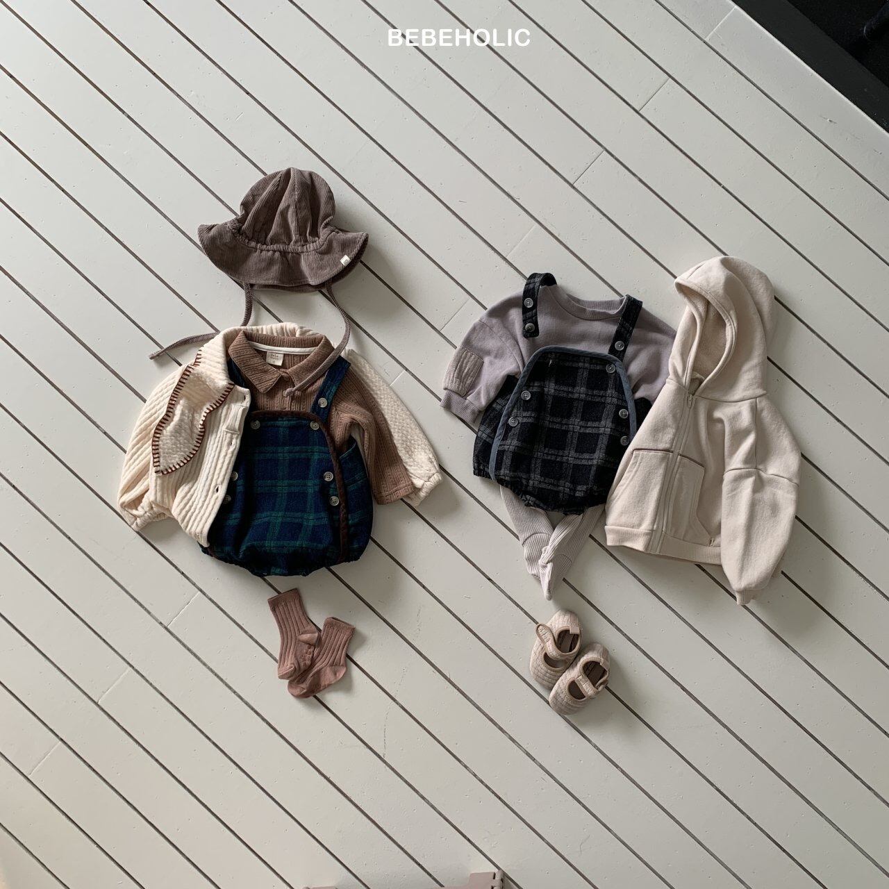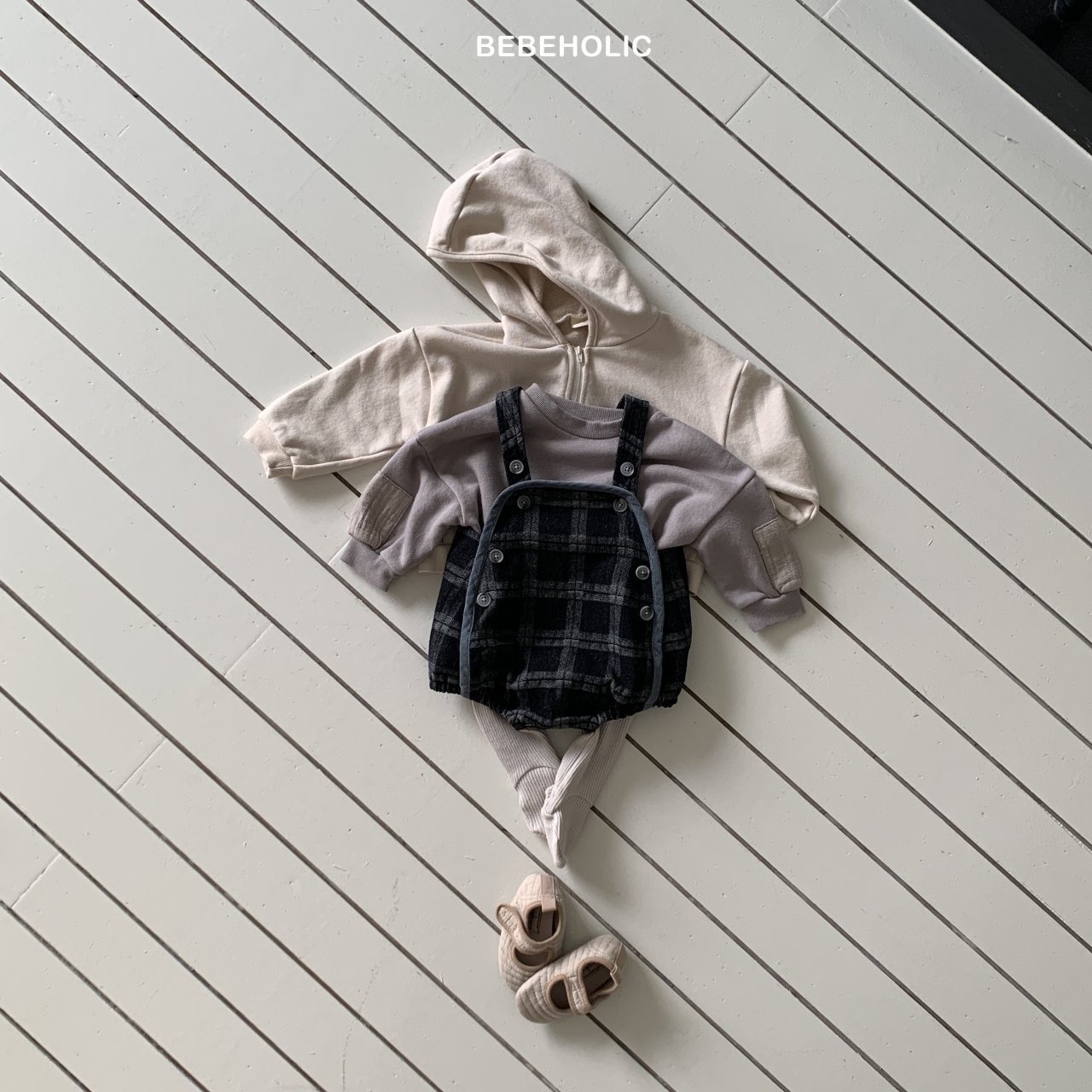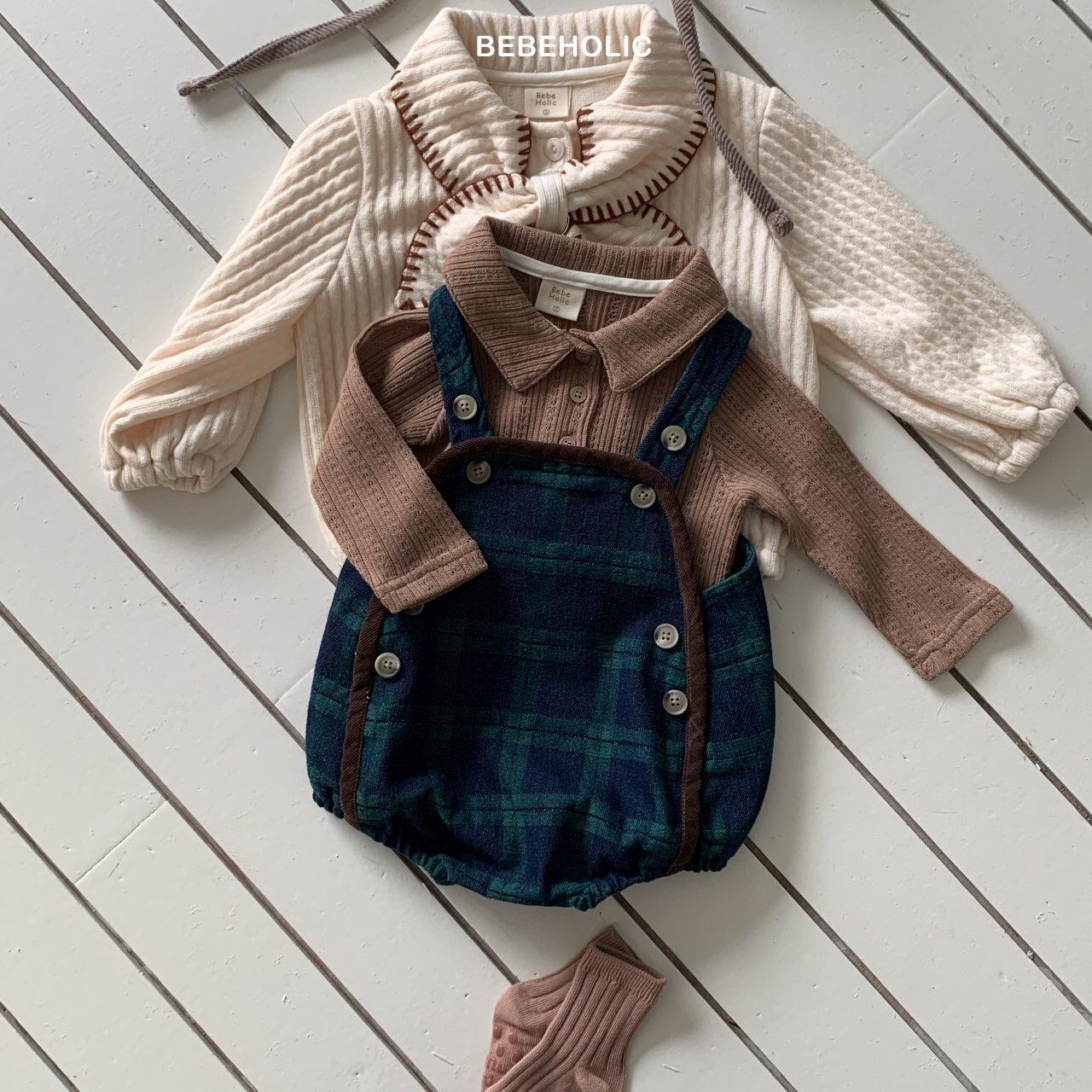 【即納】bebeholic/Checked Denim Overalls